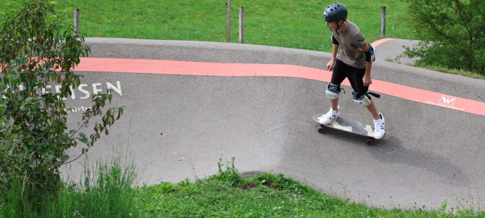 Der Schwierigkeitsgrad vom Pumptrack wurde so definiert, dass er sowohl Anfängern (kleinen Kindern, Einsteiger:innen) wie aber auch Fortgeschrittenen eine Vielzahl an Möglichkeiten bietet sich zu bewegen, zu fordern und weiterzuentwickeln.